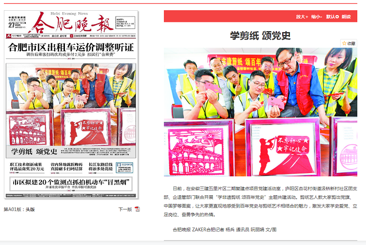 安徽日報(bào)、合肥晚報(bào)、安徽日報(bào)公眾號——學(xué)剪紙頌黨史