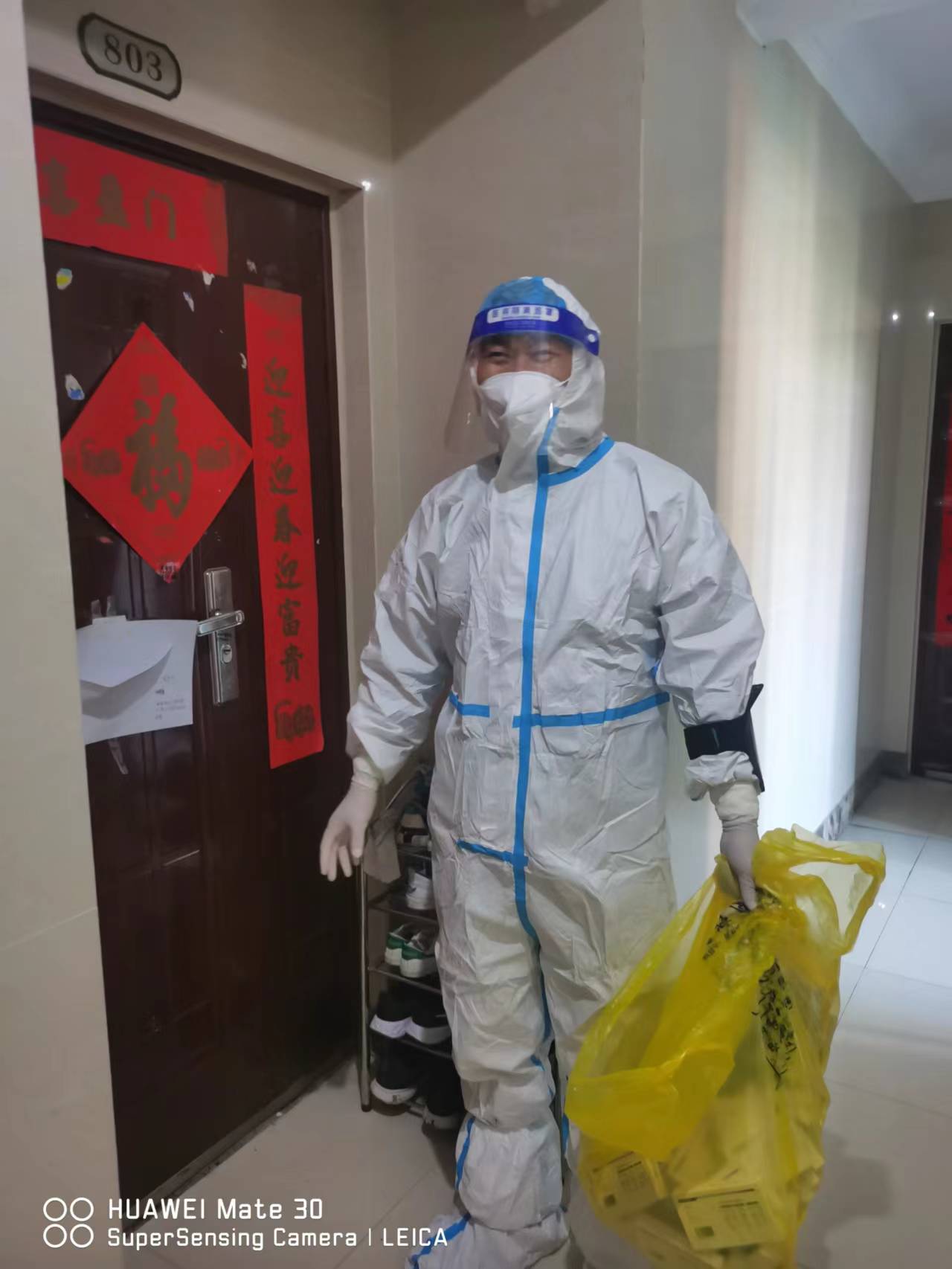 10月27日,合肥市濱湖區(qū)許多小區(qū)實行了封閉管理,社區(qū)工作人員工作量倍增,人手嚴重不足。得知情況后,八公司副經(jīng)理楊輝攜手妻子一起加入這場戰(zhàn)“疫”,作為團隊中年齡較大的志愿者,也是一名黨員,他主動要求上門協(xié)助給業(yè)主做核酸取樣,分發(fā)抗原檢測試劑和生活物資,連續(xù)工作多天的他仍然保持著高昂的工作熱情,在社區(qū)志愿者中廣受好評。