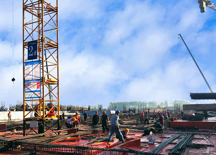截至目前,項目共計完成土方作業(yè)120萬方,使用鋼材1.6萬噸,澆筑混凝土6.5萬方。另外16棟單體主體施工全面過半,預(yù)計12月10日前可實現(xiàn)全部封頂。