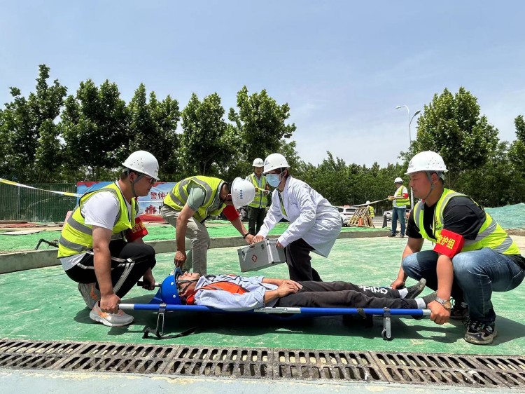 活動前,項目部成立應(yīng)急指揮領(lǐng)導(dǎo)小組,制定了詳細(xì)的演練方案和應(yīng)急預(yù)案,科學(xué)規(guī)劃了逃生線路,細(xì)化了分工職責(zé),確保演練過程安全有序。此次演練設(shè)置五個工作小組,即事故救援組、通訊聯(lián)絡(luò)組、警戒疏散組、醫(yī)療救護(hù)組、后勤保障組。演練共分為現(xiàn)場模擬火災(zāi)疏散、受傷人員緊急救治和初起火災(zāi)撲滅三個部分。