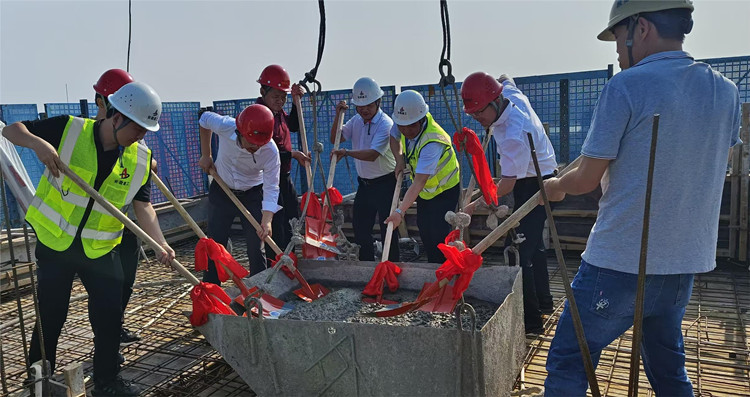 在保證施工安全和混凝土澆筑質(zhì)量的前提下,項(xiàng)目部充分發(fā)揮自身優(yōu)勢(shì),科學(xué)統(tǒng)籌,合理調(diào)配資源,積極協(xié)商對(duì)接,制定合理工期計(jì)劃,嚴(yán)格把控施工工藝,確保項(xiàng)目安全有序地快速推進(jìn),順利的完成了封頂節(jié)點(diǎn)目標(biāo)。