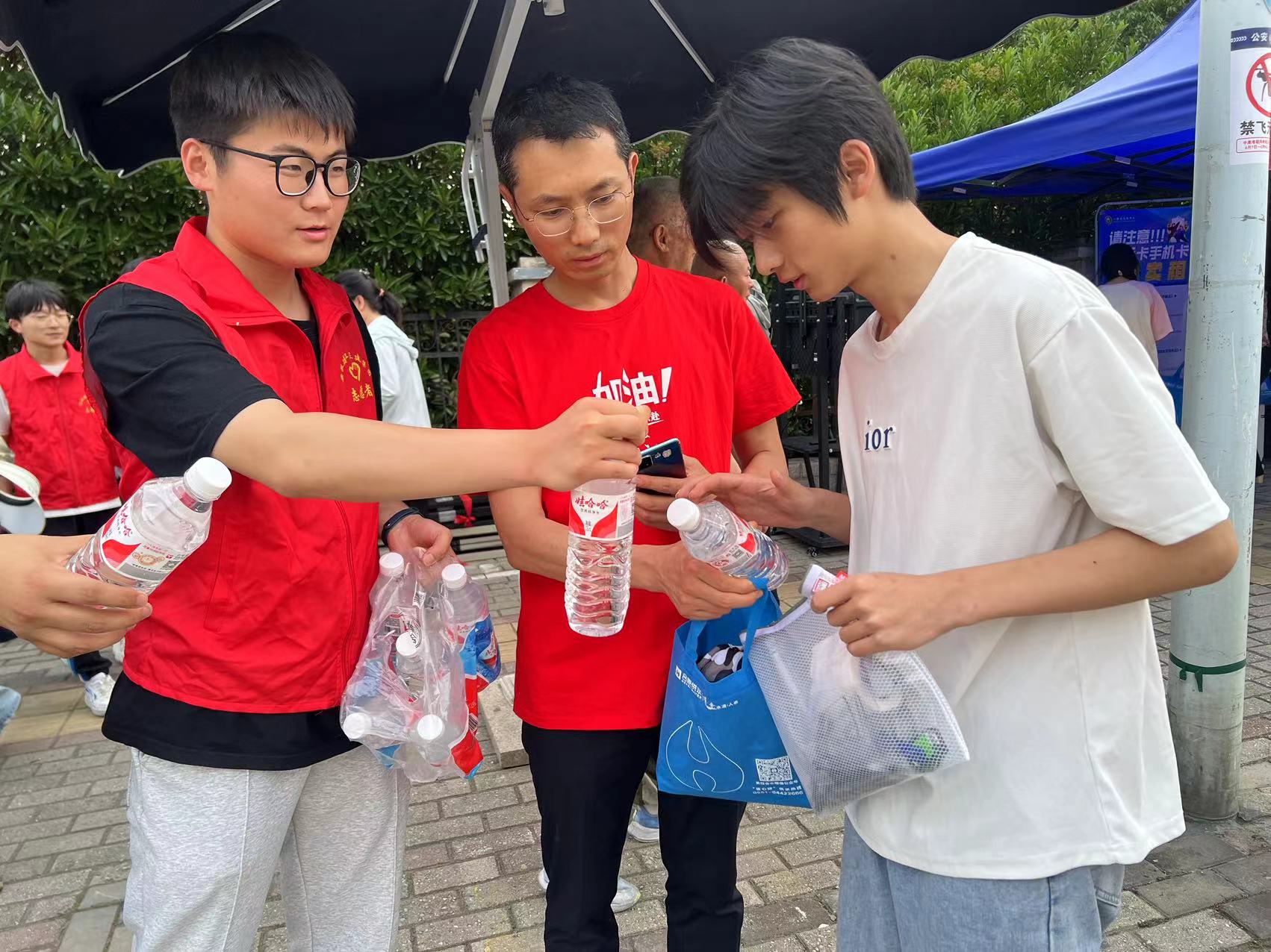 市政公司團支部組織青年志愿者為考生免費提供礦泉水、紙巾、扇子等愛心助考用品。