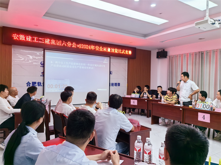 為積極響應(yīng)全國“安全生產(chǎn)月”活動號召,強化全體職工安全素質(zhì),6月28日下午,六分公司于軌道4號線項目部舉辦2024年安全質(zhì)量技能比武競賽。