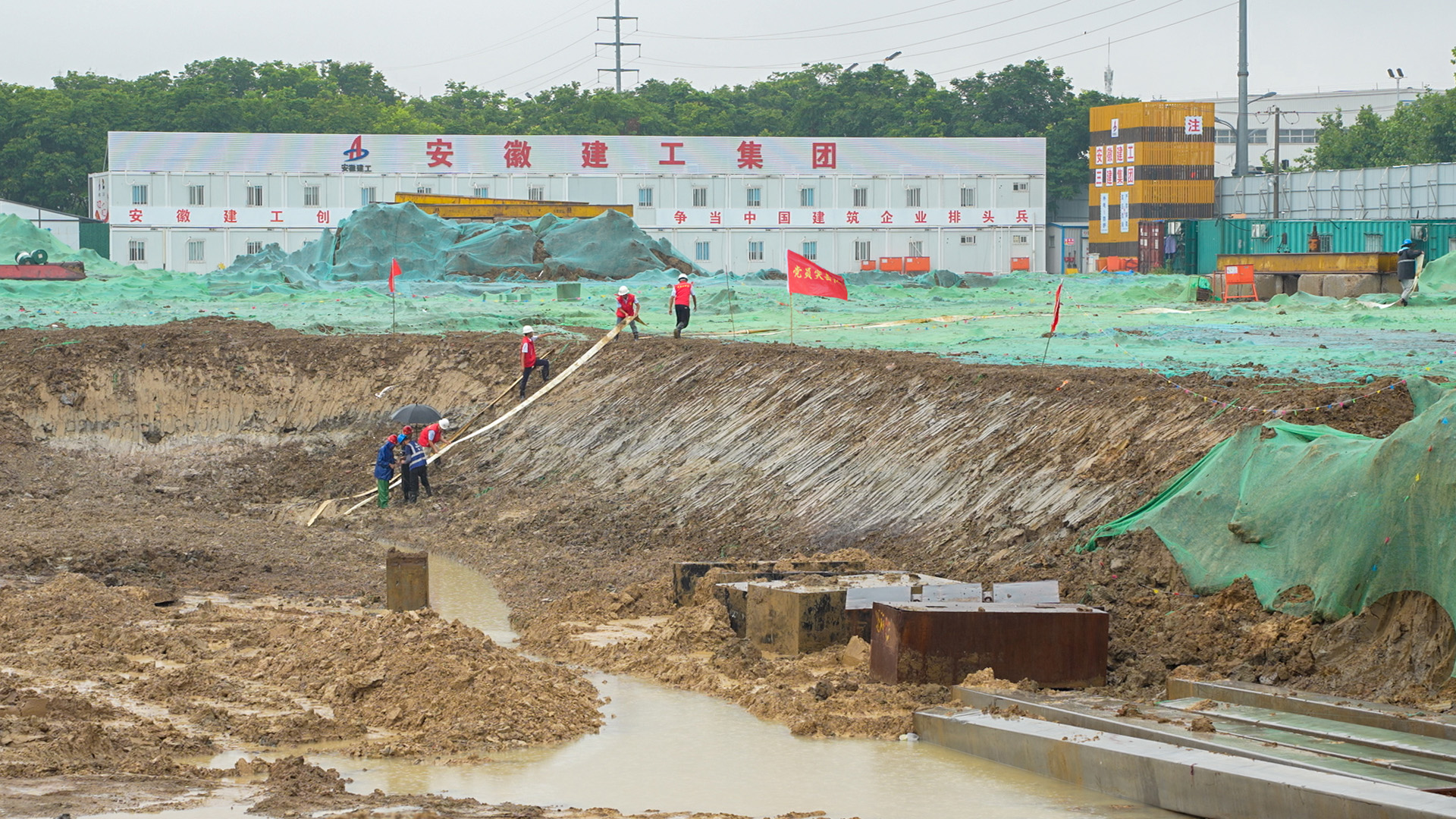 近期,合肥地區(qū)正值雨季,施工進(jìn)度不可避免地受到了影響。面對雨季帶來的不利條件,項(xiàng)目團(tuán)隊(duì)展現(xiàn)出強(qiáng)大的應(yīng)變能力,積極發(fā)揮“兩個(gè)作用”,30多名黨員沖鋒在前,奮戰(zhàn)在防汛排澇一線,現(xiàn)場40多臺抽水泵同時(shí)作業(yè),挖掘機(jī)24小時(shí)隨時(shí)待命,同時(shí)還增設(shè)臨時(shí)排水管道、優(yōu)化排水系統(tǒng),全力抽排項(xiàng)目積水,盡最大可能減少雨季水患對施工進(jìn)度和質(zhì)量造成的影響。經(jīng)過施工團(tuán)隊(duì)的不懈努力,有效避免了施工現(xiàn)場的積水問題,保障了施工的連續(xù)性,同時(shí)也彰顯了這支“江淮鐵軍”特別能吃苦特別能戰(zhàn)斗的優(yōu)良作風(fēng)。