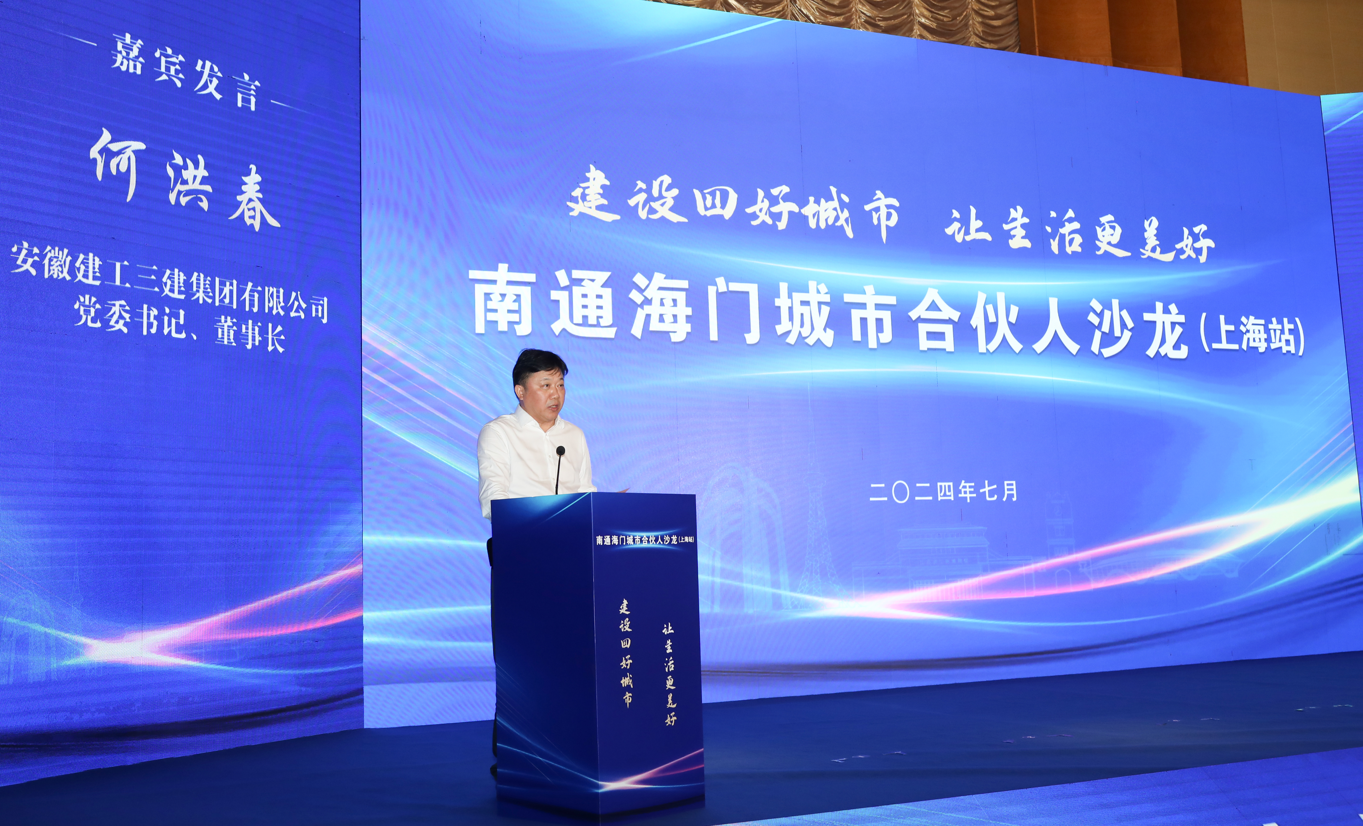 7月28日下午,由南通市海門區(qū)委區(qū)政府舉辦,以“建設(shè)四好城市,讓生活更美好”為主題的海門城市合伙人沙龍?jiān)谏虾U匍_。海門區(qū)委副書記、區(qū)長沈旭東,副區(qū)長周國強(qiáng)、張文錦出席活動(dòng)。公司黨委書記、董事長何洪春受邀出席并作為嘉賓代表交流發(fā)言,公司黨委副書記、總經(jīng)理谷建偉與江蘇海晟集團(tuán)副董事長、總經(jīng)理許佳華代表雙方簽約。