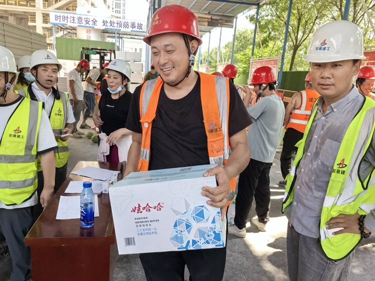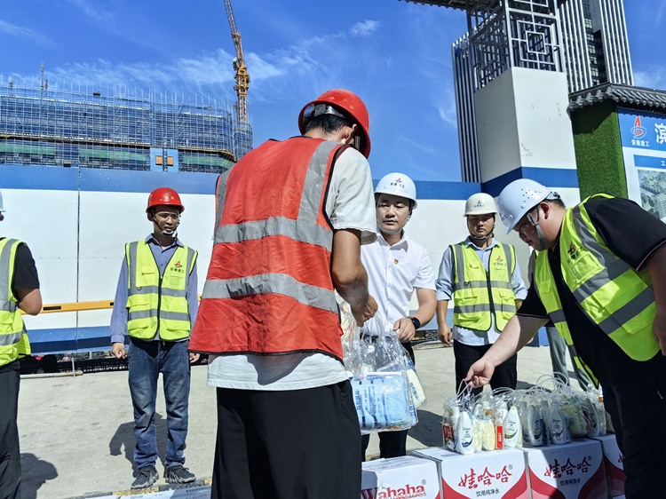 華東公司領(lǐng)導(dǎo)班子深入項(xiàng)目一線慰問了堅(jiān)守在高溫下施工的員工,走訪了員工的工作生活區(qū),對項(xiàng)目防暑降溫物資配備情況進(jìn)行了了解,并發(fā)放防暑降溫用品,為項(xiàng)目人員送去夏日清涼。