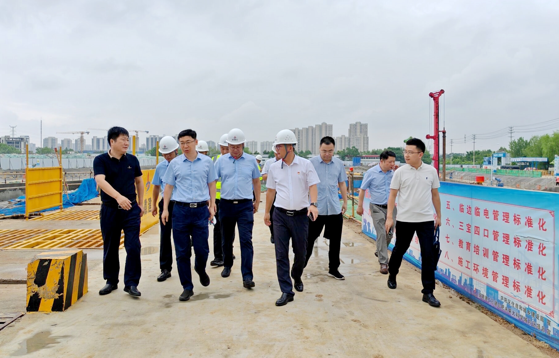 在項(xiàng)目現(xiàn)場,楊丙紅聽取了項(xiàng)目負(fù)責(zé)人關(guān)于施工進(jìn)度的匯報(bào),詳細(xì)了解了工程建設(shè)的各個(gè)環(huán)節(jié)。他強(qiáng)調(diào),安全是項(xiàng)目建設(shè)的生命線,質(zhì)量是項(xiàng)目的根本保障。項(xiàng)目部要嚴(yán)格落實(shí)安全生產(chǎn)責(zé)任制,多措并舉抓好安全生產(chǎn)工作,守牢安全防線。同時(shí),各方要加強(qiáng)溝通協(xié)調(diào),全力以赴,確保項(xiàng)目按計(jì)劃有序推進(jìn),嚴(yán)格把控工程質(zhì)量,堅(jiān)持以高標(biāo)準(zhǔn)、嚴(yán)要求打造優(yōu)質(zhì)工程,為合肥未來大科學(xué)城片區(qū)的建設(shè)貢獻(xiàn)力量。