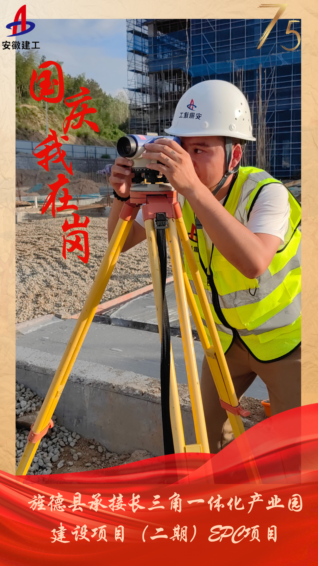 旌德縣承接長(zhǎng)三角一體化產(chǎn)業(yè)園建設(shè)項(xiàng)目(二期)EPC項(xiàng)目施工員陳正正在進(jìn)行地坪碎石墊層抄平工作。