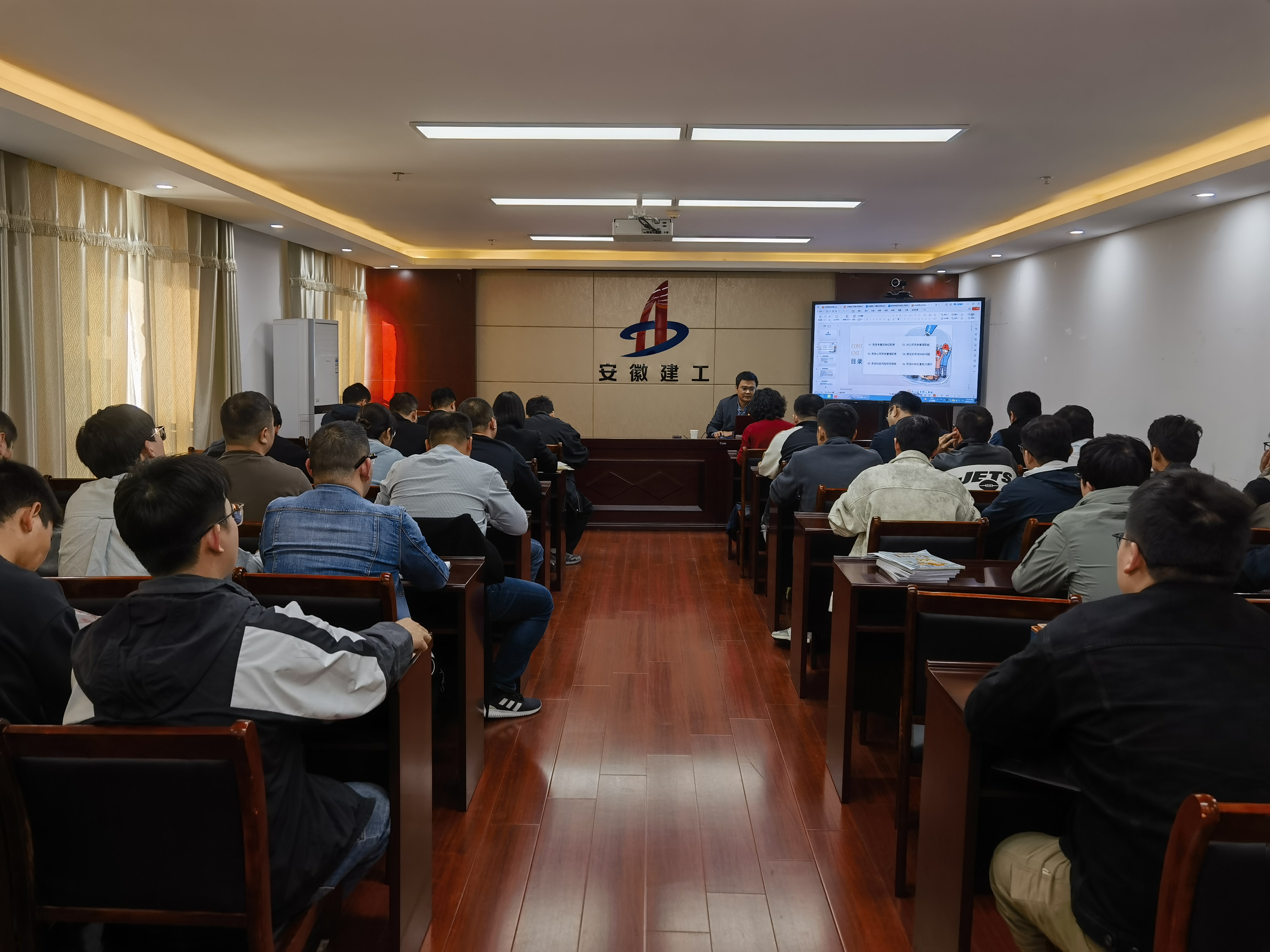 10月25日下午,裝飾公司、安裝公司聯(lián)合舉辦了勞資工作專(zhuān)題培訓(xùn)會(huì)。本次培訓(xùn)會(huì)邀請(qǐng)了公司工程管理部副主任陳貴軍主講。裝飾公司、安裝公司班子成員、科室負(fù)責(zé)人及項(xiàng)目人員等共計(jì)40余人參加。