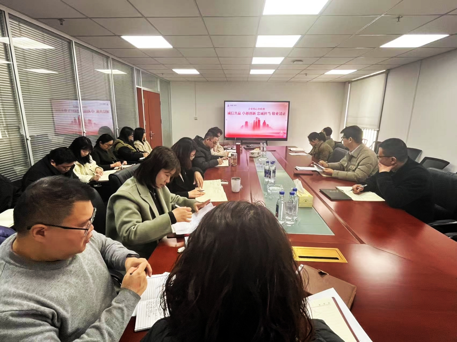 近日,門窗公司黨支部組織全體員工深入學(xué)習(xí)集團(tuán)核心價值觀,深刻領(lǐng)會“誠信共贏、卓越創(chuàng)新、忠誠擔(dān)當(dāng)、敬業(yè)清正”的豐富內(nèi)涵和深刻意義。會議要求,全體職工要將集團(tuán)核心價值觀作為日常工作的行為準(zhǔn)則,切實(shí)將集團(tuán)核心價值觀落實(shí)到崗位職責(zé)和實(shí)際工作中,真正做到內(nèi)化于心,外化于行,在實(shí)踐中落地生根。