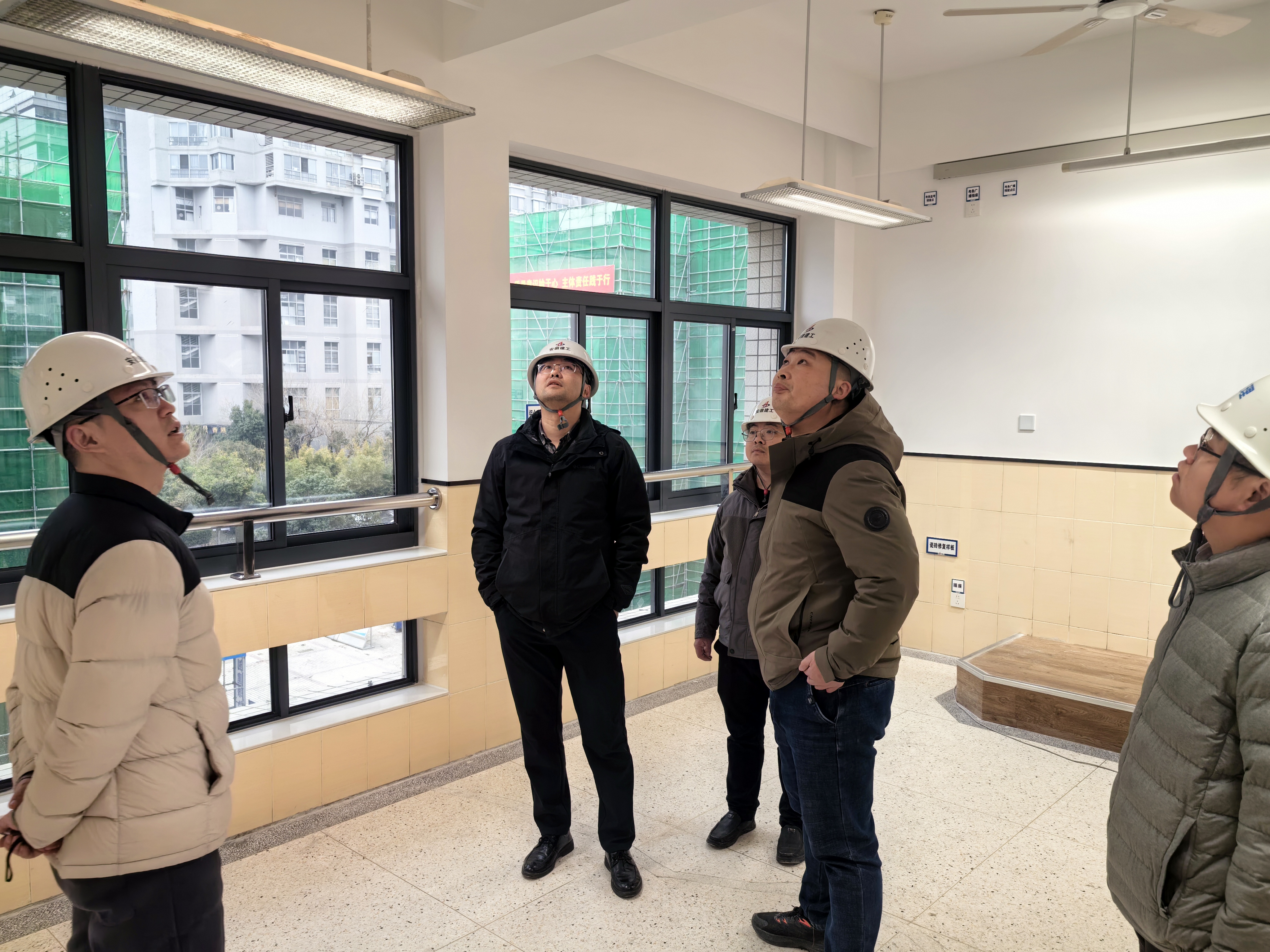 唐歡一行實地考察項目教室樣板間等區(qū)域,了解項目進展,并對項目建設(shè)進展情況給予了充分的肯定。他強調(diào),一要嚴格落實安全生產(chǎn)責任制,強化高空作業(yè)、臨時用電、施工噪音、揚塵治理等關(guān)鍵環(huán)節(jié)的風險管控,針對項目中涉及的體育館網(wǎng)架拆除重建、電梯加裝等復雜工序,監(jiān)理單位全程旁站監(jiān)督,切實防范安全隱患。二要強化過程驗收,采用 “樣板引路” 制度,以點帶面提升整體施工品質(zhì)。三要科學調(diào)配資源,合理劃分作業(yè)區(qū)域,在確保安全質(zhì)量的前提下加快施工進度,要加強統(tǒng)籌謀劃,協(xié)同保障項目的安全與品質(zhì)。
