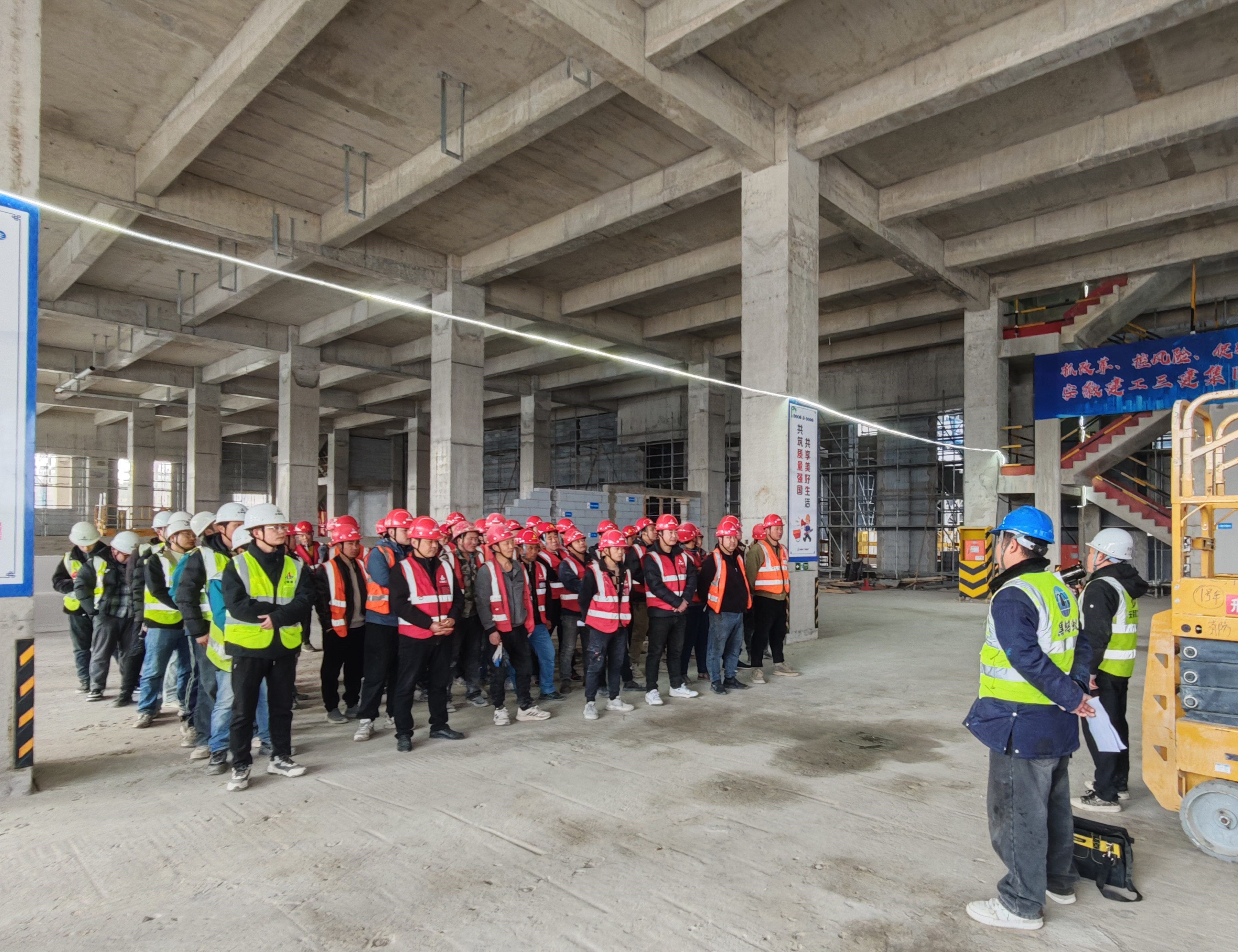 為深入貫徹落實集團及公司兩級職代會精神,強化項目管理,深化黨建引領,皖南公司于近日在弋江區(qū)新型產(chǎn)業(yè)園啟動區(qū)項目和經(jīng)開區(qū)汽車電子產(chǎn)業(yè)園項目依次組織開展高處作業(yè)及剪叉式高空作業(yè)車安全專項培訓工作。以黨建引領為抓手,以科技創(chuàng)新為支撐,全面提升安全管理水平,為企業(yè)高質(zhì)量發(fā)展注入“紅色動能”。本次培訓覆蓋項目經(jīng)理、安全員、工人等,通過“黨建+安全”融合模式,推動安全責任落地、風險防控升級、文化氛圍營造,為項目建設筑牢安全屏障。