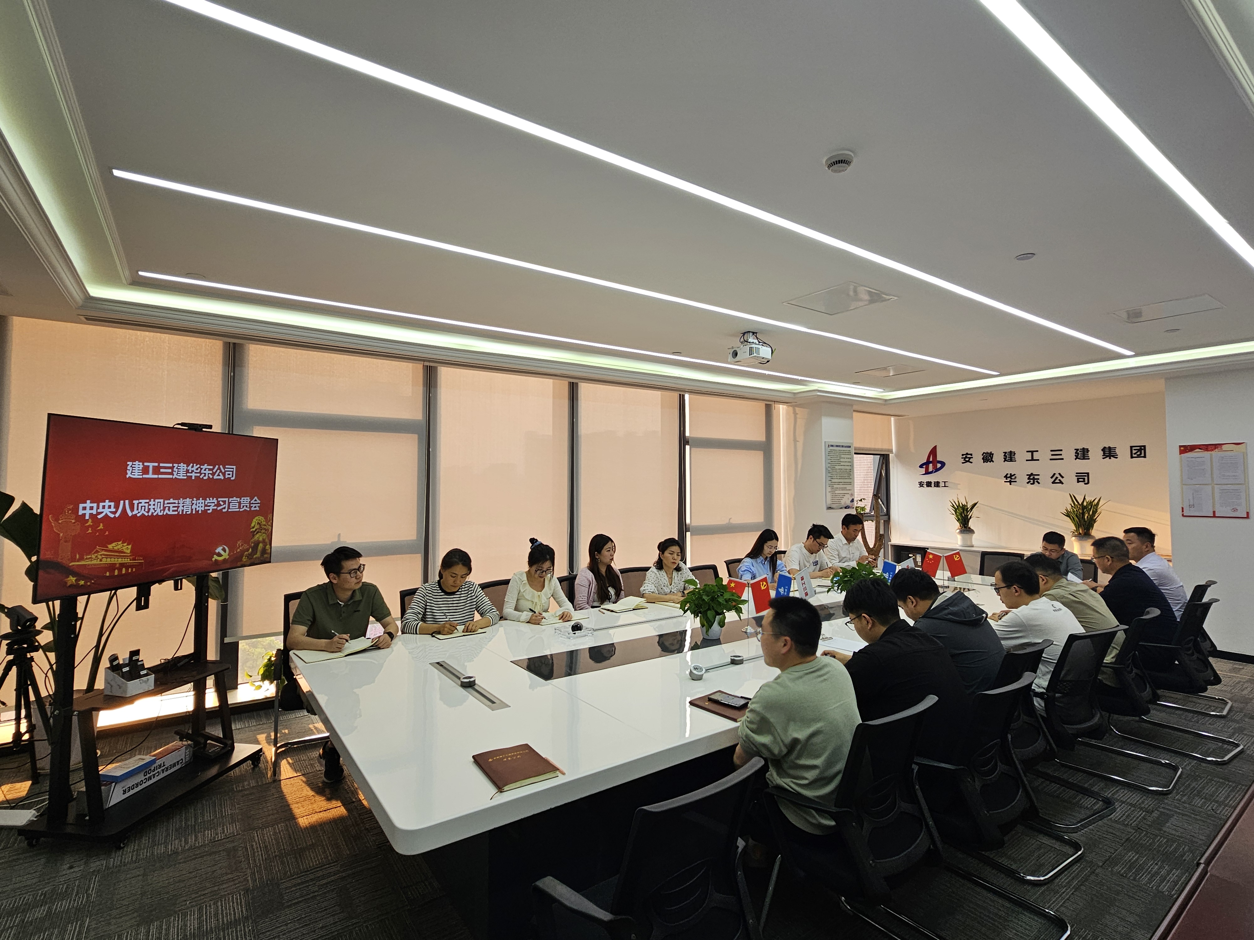 為推進作風(fēng)建設(shè)常態(tài)化長效化,牢固樹立規(guī)矩意識,近日,華東公司機關(guān)及在所屬項目積極組織開展深入貫徹中央八項規(guī)定精神學(xué)習(xí)教育,分公司班子成員、科室負責(zé)人及項目全體人員參與會議。