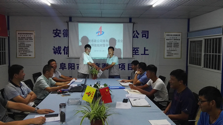 日前,市政公司在阜陽(yáng)市北京西路工程項(xiàng)目部會(huì)議室,組織開展了青年交流會(huì)暨2018年度師徒結(jié)對(duì)簽字儀式。市政公司近三年以來(lái)進(jìn)場(chǎng)的大學(xué)生、阜陽(yáng)市北京西路工程項(xiàng)目全體管理人員及部分科室負(fù)責(zé)人和領(lǐng)導(dǎo)班子成員參加了活動(dòng)。