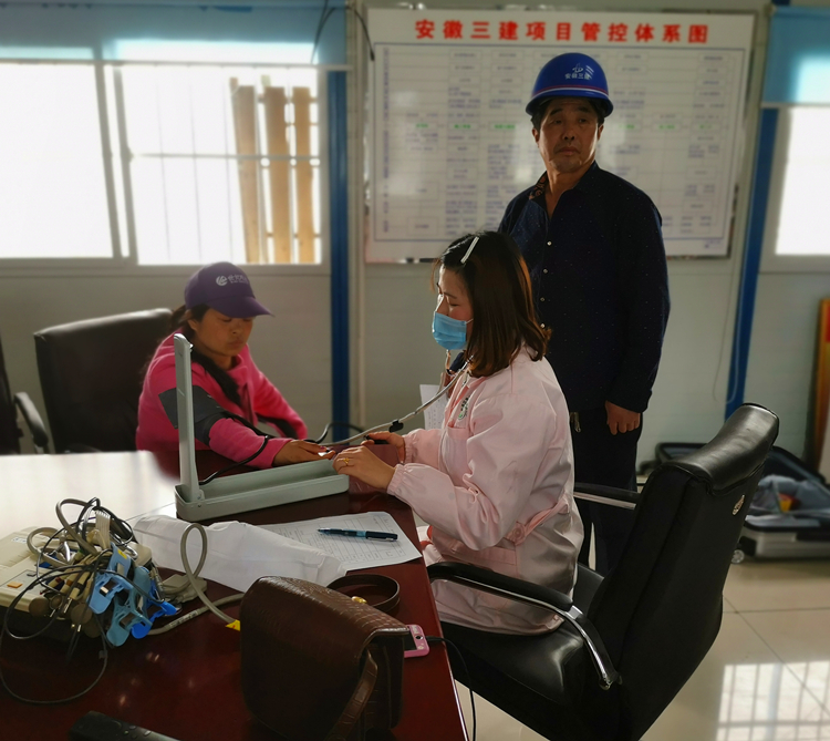 體檢項目包括常規(guī)身體檢查、測血壓及心電圖等。體檢現(xiàn)場,醫(yī)務(wù)人員為每位工人進行了全面的細致檢查,使項目一線工人進一步的了解了自身的身體狀況,經(jīng)過一個下午的忙碌,此次活動得以圓滿完成。