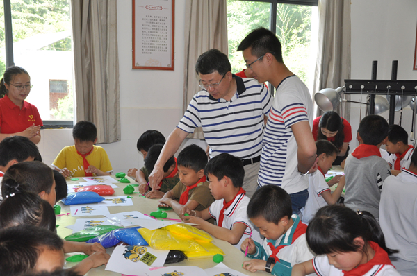 活動中,兩公司青年團(tuán)員分組分別與不同年紀(jì)的小學(xué)生,開展繪畫、唱歌、手工制作以及手語伴唱等互動活動。隨后,該校少先隊員向參加活動的青年團(tuán)員以及企業(yè)黨團(tuán)負(fù)責(zé)人贈送紅領(lǐng)巾。活動氛圍輕松,受到校方師生一致歡迎?;顒又形骞就钔丁ぬ煜旅髦轫椖抗芾砣藛T還為該校捐贈一臺音響設(shè)備及150根跳繩,希望孩子們多強(qiáng)身健體。
