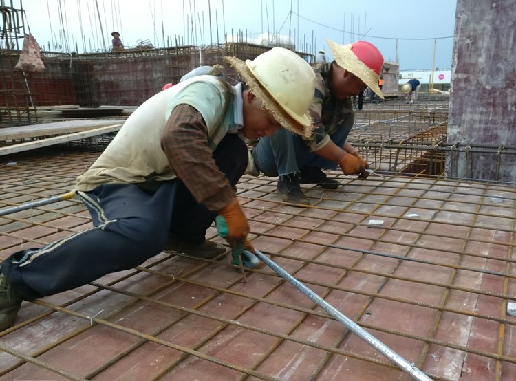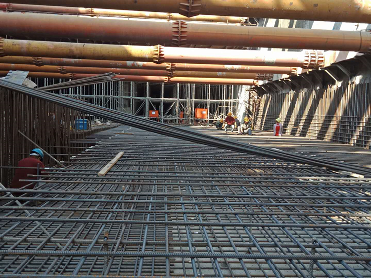 在一公司藝境項(xiàng)目的最后一塊地下室頂板上,工人師傅們頭戴安全帽,手拿工具,綁扎鋼筋、支模板、澆筑混凝土,揮灑激情,全心全意的為項(xiàng)目結(jié)構(gòu)封頂做努力。