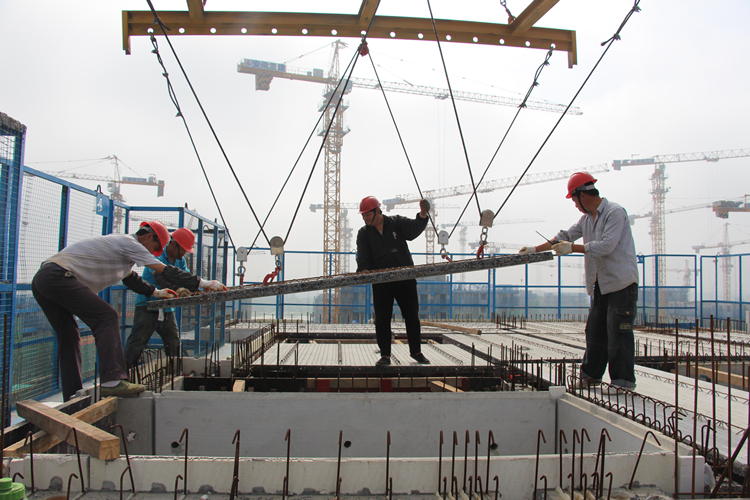 國(guó)慶期間二公司各項(xiàng)目搶工不停歇,康利園、沁園、正大桐山國(guó)際廣場(chǎng)項(xiàng)目混凝土澆筑、預(yù)制構(gòu)件疊合板、墻板吊裝施工井然有序,圖為沁園項(xiàng)目進(jìn)行疊合板吊裝。