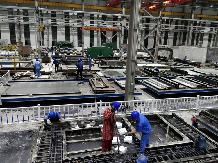 為配合沁園、康利園等項(xiàng)目項(xiàng)目進(jìn)度要求,工業(yè)公司國(guó)慶節(jié)期間,各生產(chǎn)線活力全開(kāi),根據(jù)項(xiàng)目現(xiàn)場(chǎng)需求適時(shí)調(diào)整生產(chǎn)線。圖為9月30日深夜降臨,還有10分鐘就是祖國(guó)第六十九個(gè)生日,建筑工業(yè)公司職工進(jìn)行墻板生產(chǎn)。