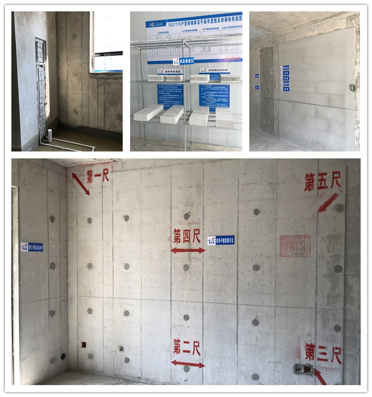 蚌埠公司項目團隊還結合鋁膜技術采用高度穿插施工組織方案,有效保障質(zhì)量和工期。主要做法是一方面采取對二次結構、門窗固定片企口、欄桿固定杯口、窗臺高度等優(yōu)化設計,使之隨主體結構施工,從而縮短工期提高質(zhì)量;另一方面結合碧桂園全砼外墻施工的要求,采用高度穿插施工方式——結構施工至6層安裝人貨電梯,結構施工至7層開始砌筑,結構施工至10層開始抹灰,結構施工至15層開始精裝修,外墻保溫隨結構同步施工,欄桿、扶手、門窗同步穿插。