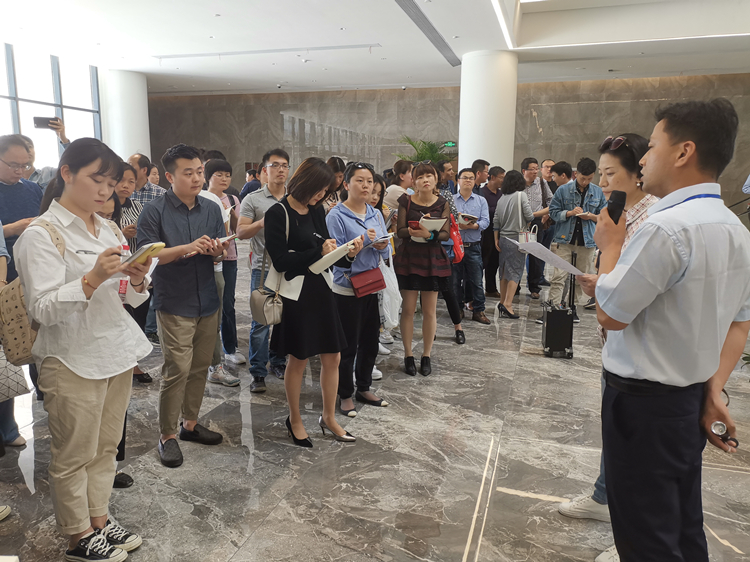 圖為全體學(xué)員前往安徽創(chuàng)新館項(xiàng)目開(kāi)展現(xiàn)場(chǎng)采訪觀摩及主題新聞業(yè)務(wù)比武活動(dòng)