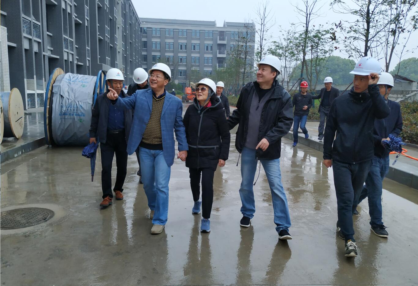 張素久一行深入項目施工現(xiàn)場,實地察看了施工項目建設情況以及整體環(huán)境。親眼見到父親當年創(chuàng)辦的黃麓師范學校正如火如荼的進行擴建,并得知將在明年完成校區(qū)內(nèi)全部建設時,她由衷贊嘆“真的很漂亮!真的很感動”。