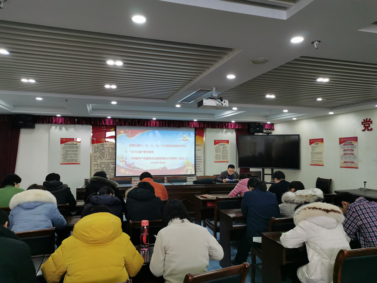 1月8日上午,安徽三建六、七、八、九、十公司黨支部于香楓創(chuàng)意園22樓黨員活動室開展“三個以案”警示教育,并集中組織黨員職工學習《中國共產黨國有企業(yè)基層組織工作條例(試行)》,共計30余人參加