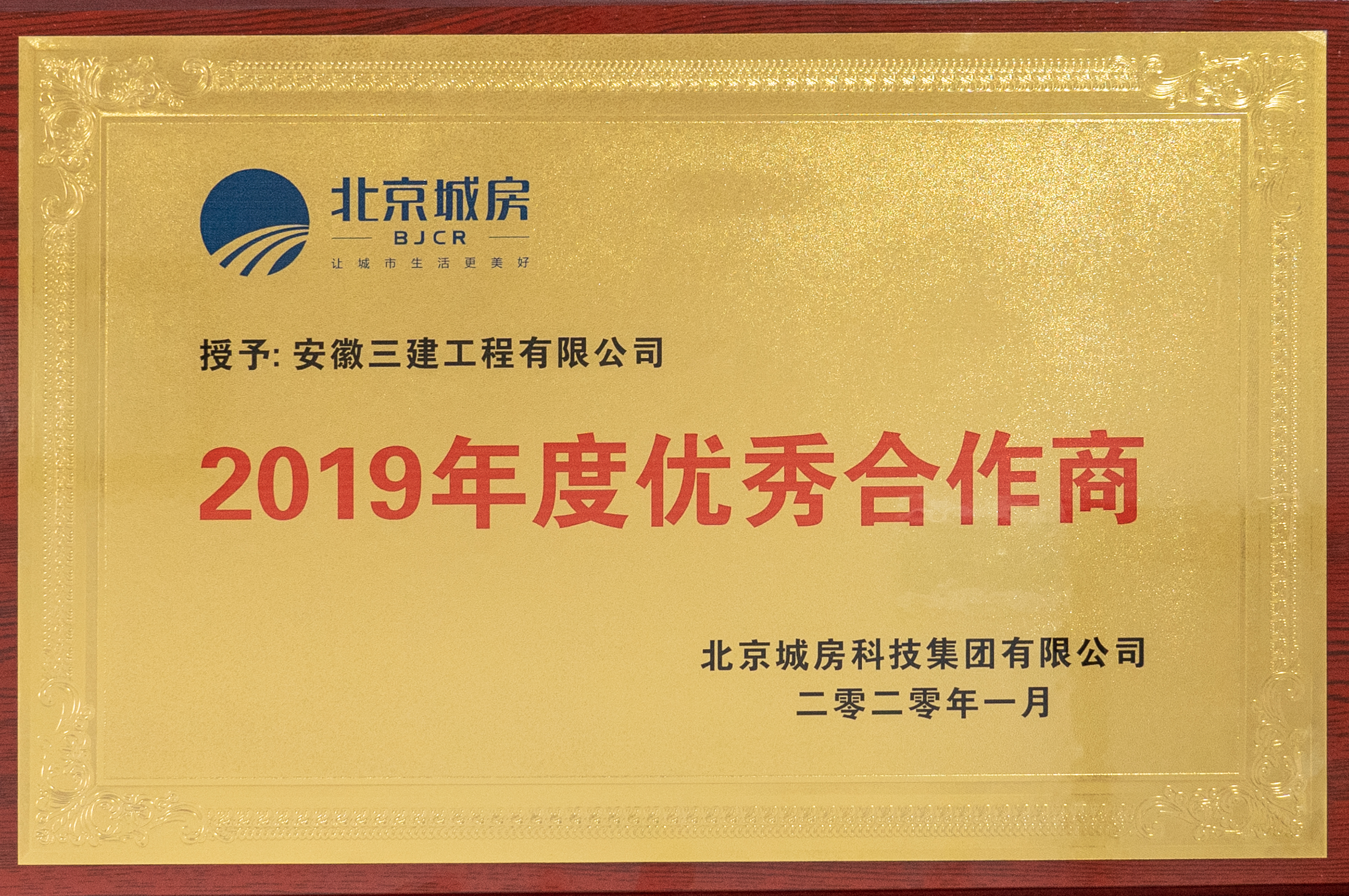業(yè)主點(diǎn)贊!公司榮獲2019年度北京城房集團(tuán)“優(yōu)秀合作商”榮譽(yù)