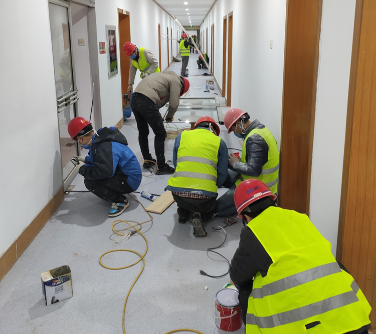 領(lǐng)導(dǎo)帶頭,組織有力。當(dāng)晚項目班子組成,連夜開始組織人員。2月2日上午20余名管理人員到位,40多名工人陸續(xù)到來。萬和生,彭純杰和安建設(shè)計院有關(guān)人員一起連夜加班調(diào)閱圖紙、梳理工作任務(wù)清單,開展前期工作。