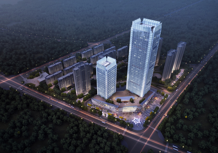 金寨“城市之光”超高層項(xiàng)目位于六安市金寨縣,東臨響山寺路,南至懸劍山。項(xiàng)目建設(shè)方是明發(fā)集團(tuán),總建筑面積約16萬平方米,合同總價(jià)約4.5億元,由2層地下車庫、3層裙房及A棟超高層辦公和酒店、B棟高層辦公兩棟主體塔樓組成。其中A棟:42層,總高度188米;B棟:18層,總高度108米,形成超高“雙子樓”格局。