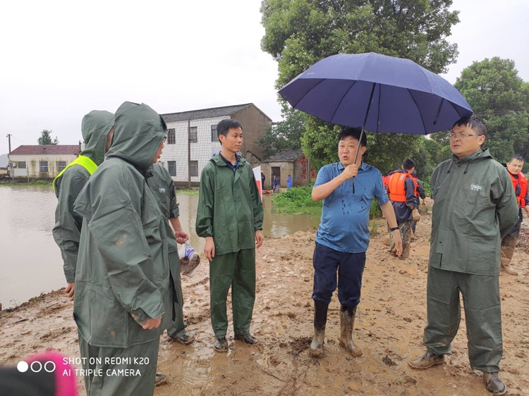7月19日,公司黨委副書記、總經(jīng)理何洪春冒雨前往白山鎮(zhèn)金沈村、同春村、九聯(lián)圩村、南淝河東邊步行道攔水埂等抗洪一線指揮部署搶險工作