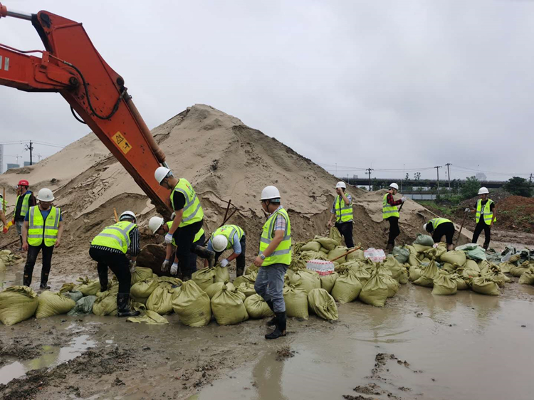 安徽三建二公司合巢產(chǎn)業(yè)新城郭塘新村、映湖公租房項目職工配合合巢新城開展防汛搶險工作