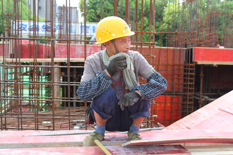 華力勞務(wù)公司中海新站區(qū)27#售樓部項目現(xiàn)場,鋼筋師傅正在烈日下綁扎鋼筋