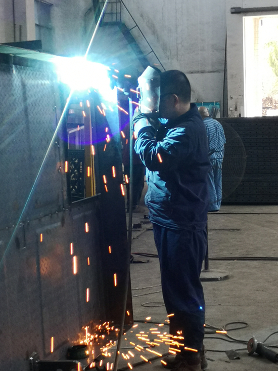 連日來,輕鋼龍骨公司采取了多項措施戰(zhàn)高溫、保生產(chǎn)。一方面為車間班組發(fā)放了毛巾、風(fēng)油精、人丹等防暑降溫物品和藥品;另一方面為各車間辦公室安裝了空調(diào)設(shè)施,供車間師傅乘涼、休息使用;此外,龍骨公司還加強車間班組人員用電、機械設(shè)備操作等安全教育,確保做到生產(chǎn)、人員安全,為廣大職工營造安全生產(chǎn)環(huán)境。圖為輕鋼龍骨公司二車間師傅高溫下穿著長袖工作服焊接人貨電梯產(chǎn)品。