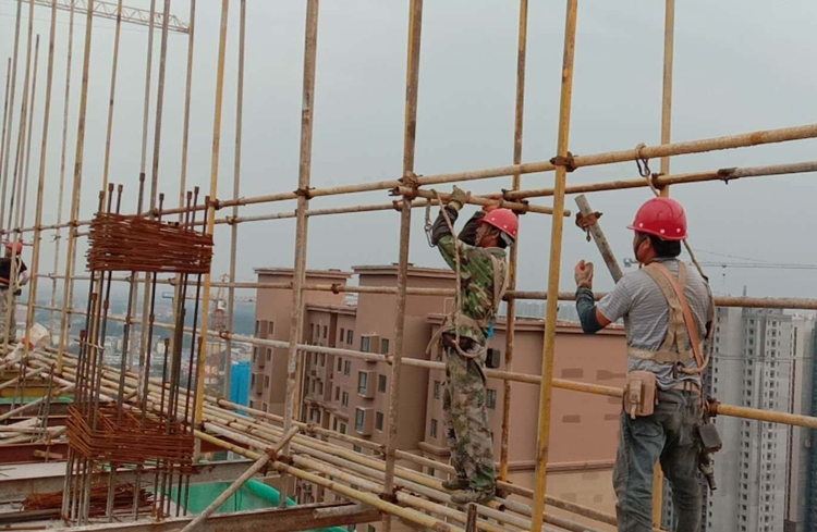 8月份以來,皖北連天35°以上高溫天氣,亳州時代樾府項目正值上結(jié)構(gòu)階段,架業(yè)公司要求外架搭設(shè)班組嚴(yán)格遵守上級主管部門和項目部要求,錯峰上班、合理安排工作,既要搶抓工期,也要遵守安全搭設(shè)紀(jì)律,確保高溫期間施工安全。圖為工人師傅在搭設(shè)防護(hù)架。
