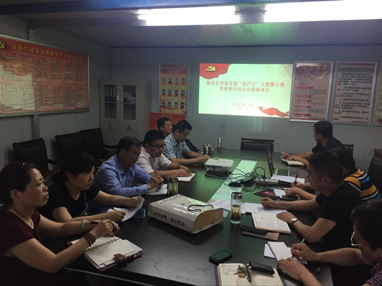 2018年7月5日,架業(yè)公司黨支部率先召開“講嚴立”專題警示教育組織生活會會前征求意見座談會,全體黨員參加了會議。會議由黨支部副書記張賢軍主持。